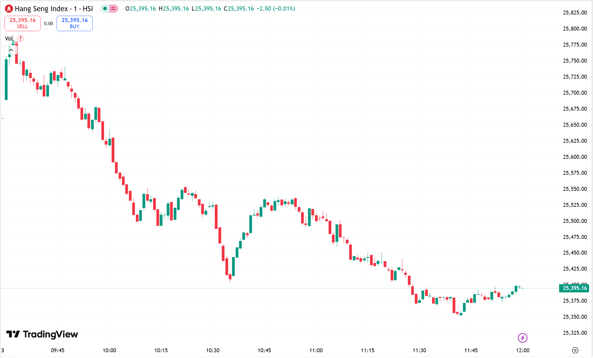 • 恒生指数跌 0.40%,收报 25,395.16 点