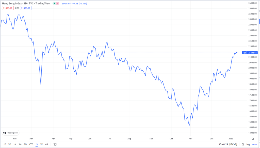 以港股市场为例,年初迄今恒生指数已大涨 7% 左右,不断收复去年的失地,俨然展现出一幅脱胎换骨的全新面貌。因为就在约两个多月之前,恒生指数还一度下跌至约 14,000 多点的低位。但如今相较于去年的最低位,恒生指数已俨然暴涨约 40%,一举扭转颓势。
