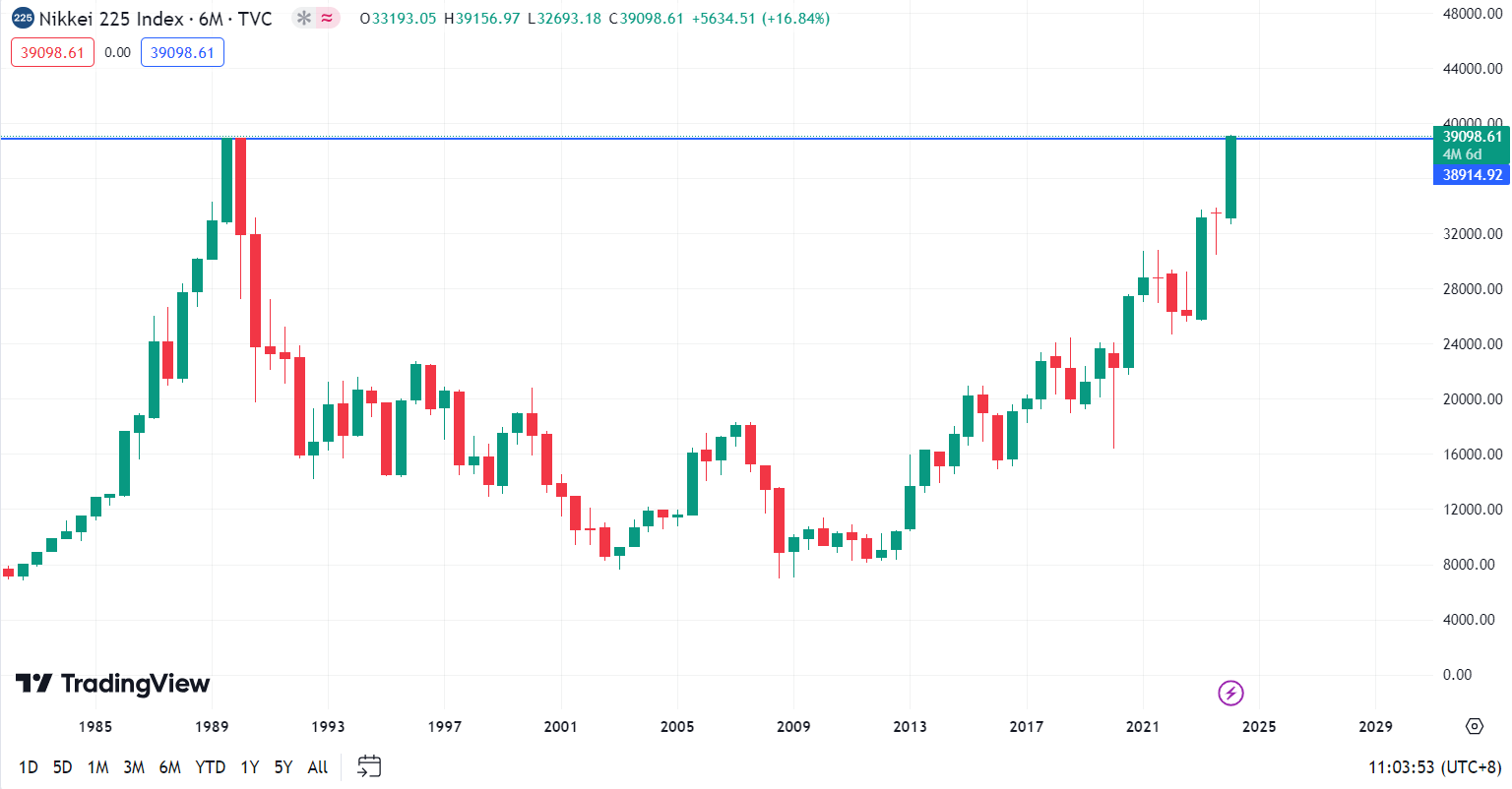 日经指数近日超越了 1989 年“失落 30 年”前的最高点,今年 2 月日经指数持续上涨,在 2 月21 日收盘时达到 39,098 点,间隔34年后再次创下新高点。,高盛也挑选出幕后推手的“七武士”,分别是网屏公司、Advantest、DISCO、东京威力、丰田汽车、 Subaru 及三菱商事。高盛称,美国“科技七雄”自2020年3月以来的升浪主要来自销售增长,日本“七武士”升浪则主要来自市盈率扩张(意味估值重评)。意味日股升浪主要来自投资者对早前估值被低估的日本股市重新审视。