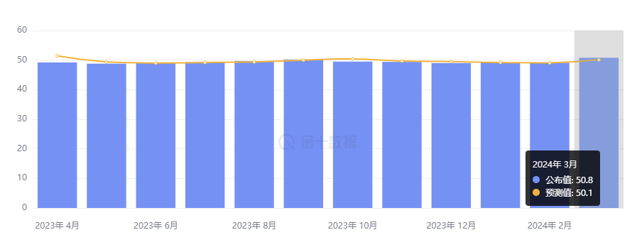 3 月 31 日,中国国家统计局公布的数据显示,随着企业在春节过后加快复工复产,市场活跃度提升,3 月官方制造业 PMI 为 50.8%,比上月上升 1.7%。