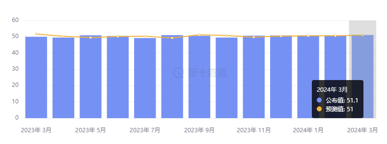 4 月 1 日,标普全球公布的数据显示,随着供求持续改善,中国制造业扩张步伐加速,3 月财新中国制造业采购经理指数(PMI)录得 51.1,微升 0.2%,已连续五个月位于扩张区间,创 2023 年 3 月来新高。