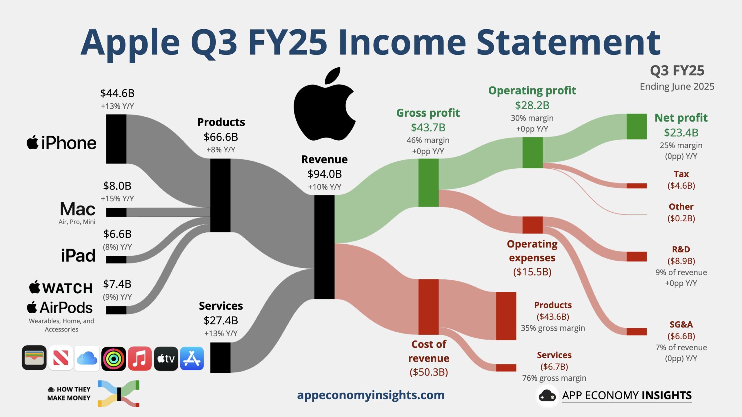 具体数据显示,截至 6 月 28 日的财季,苹果营收同比增长 9.6%,达 940 亿美元,为 2021 年底以来最快增速,高于分析师预期的 893 亿美元;每股收益为 1.57 美元,亦超出预期的 1.43 美元,去年同期为 1.40 美元。