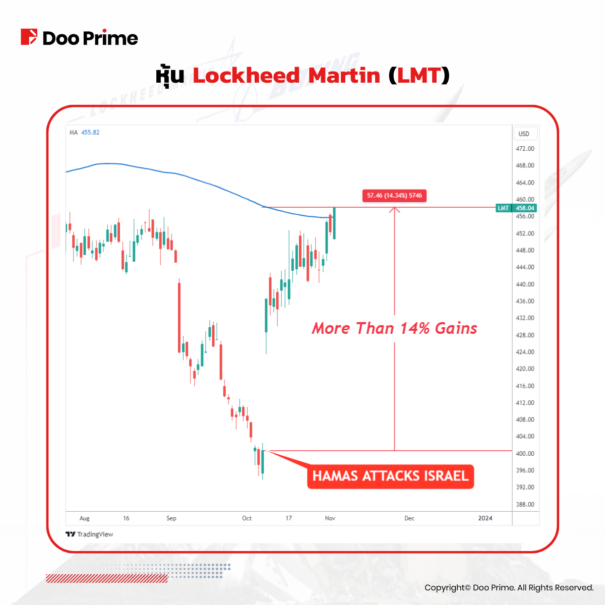 สงครามระหว่างอิสราเอล-ฮามาสที่กำลังดำเนินอยู่ และความกลัวว่าความขัดแย้งจะทวีความรุนแรงขึ้นอีกในตะวันออกกลาง กำลังผลักดันราคาหุ้น ‘Defense Stocks’ หรือหุ้นบริษัทคว้าอาวุธให้สูงขึ้น อิรัก เยเมน ซีเรีย และเลบานอนกำลังผนึกกำลังกับกลุ่มฮามาสเพื่อกดดันอิสราเอลให้ยุติอาชญากรรมสงครามต่อพลเรือนชาวปาเลสไตน์ นักลงทุนควรระมัดระวังเกี่ยวกับเหตุการณ์ที่กำลังจะเกิดขึ้นในตะวันออกกลาง และทำความเข้าใจถึงผลกระทบที่อาจเกิดขึ้นกับตลาดโลก