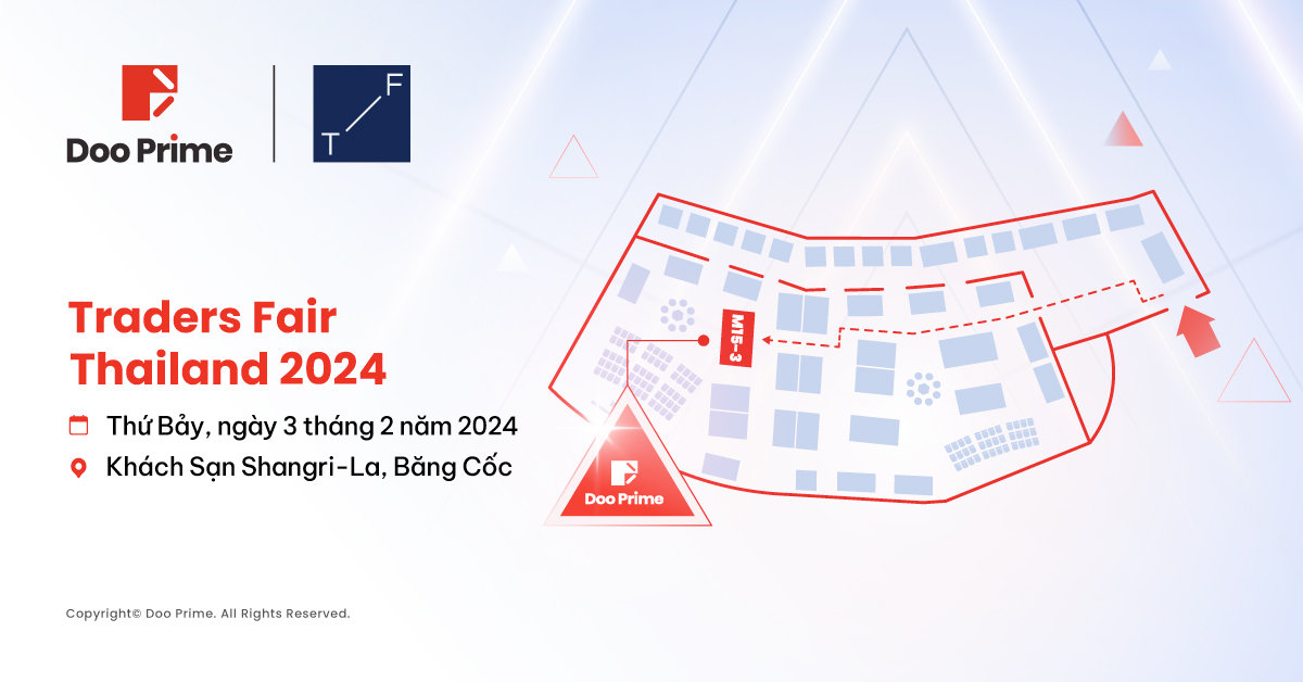 Doo Prime xin hân hoan thông báo sự trở lại của mình với tư cách nhà tài trợ chính thức trong Triển Lãm Tài Chính Traders Fair Thailand 2024, được tổ chức tại Băng Cốc – thủ đô sôi động của “xứ sở chùa Vàng”. Sự kiện này cũng đánh dấu sự khởi đầu của hành trình tham gia chuỗi triển lãm giao dịch trên quy mô toàn cầu, với điểm đến đầu tiên là đất nước Thái Lan xinh đẹp trong năm mới 2024.